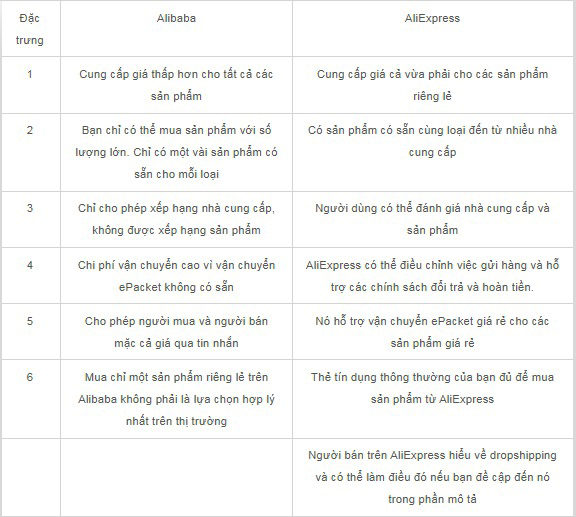 2. Sự khác biệt giữa Alibaba và AliExpress