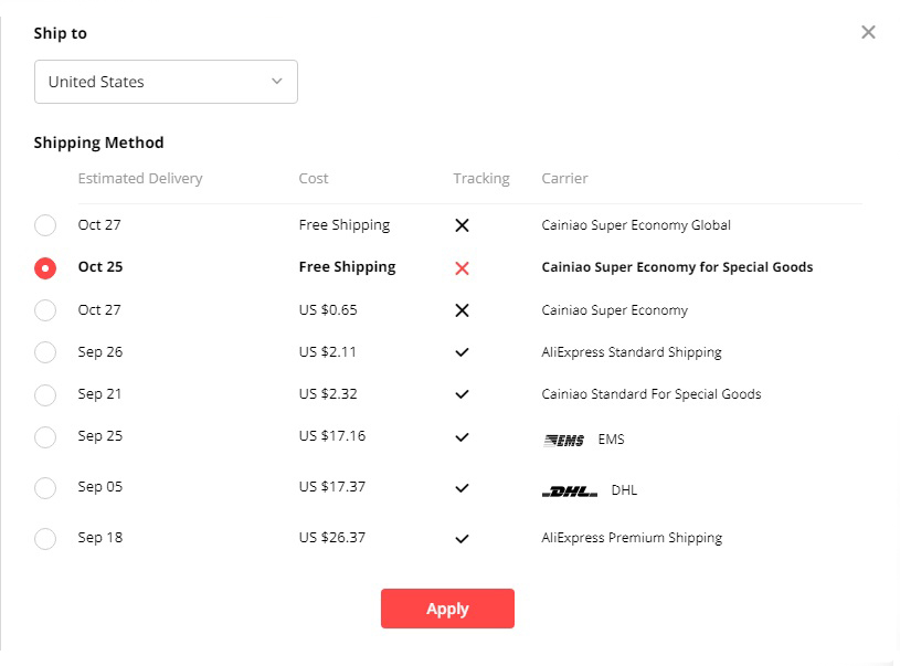 Một lý do rất nhiều người thích AliExpress là vì nó cung cấp tùy chọn giao hàng. Một số người bán cũng có dịch vụ vận chuyển miễn phí trên AliExpress. Đó là một cách tuyệt vời để tiết kiệm chi phí cho việc kinh doanh dropshipping của bạn.